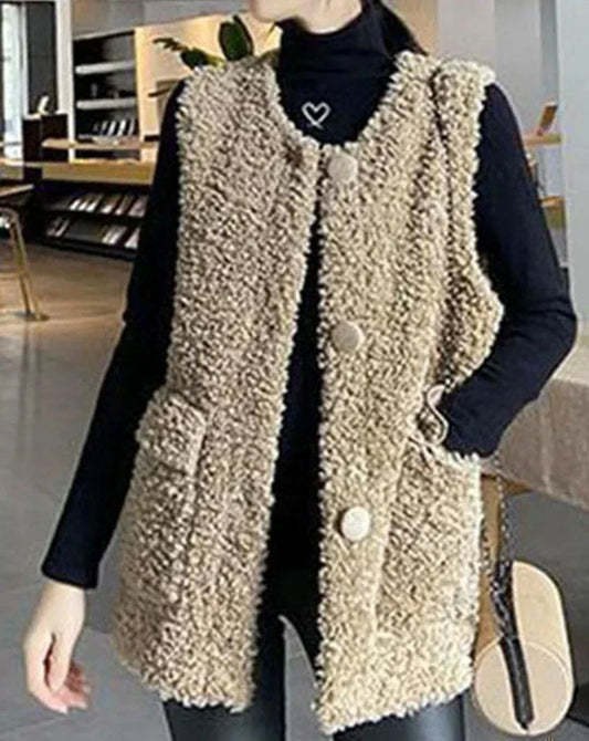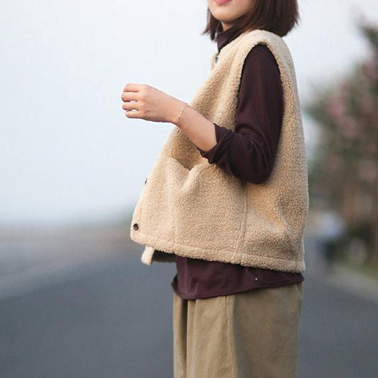 Manteau Sans Manches à Poches – Style Tendance, Taille Grande, Couleur Nude